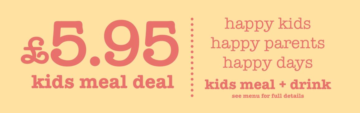 Treat the kids while also treating yourself! Our kids meal deal is bound to keep your mini me’s happy, chose any kids meal & a drink for only £5.95.